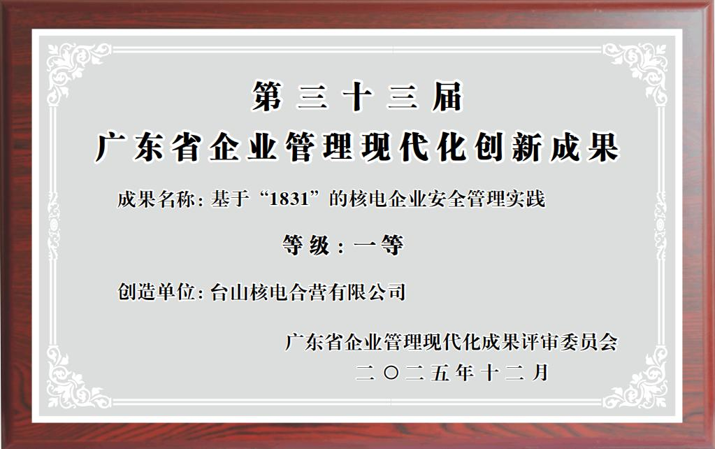 克日,,,,,第三十三届广东省企业治理现代化立异效果审定效果正式宣布,,,,,taptap点点网站-(中国)手机网站申报的《基于“1831”的核电企业清静治理实践》在全省223项参评项目中荣获一等奖。。。。。。